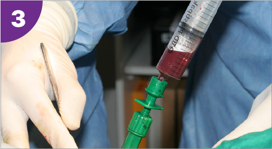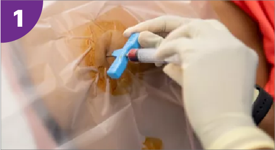 El médico o el personal de enfermería realizan una pequeña incisión en la piel, después coloca una aguja hueca a través del hueso hasta alcanzar la médula ósea.